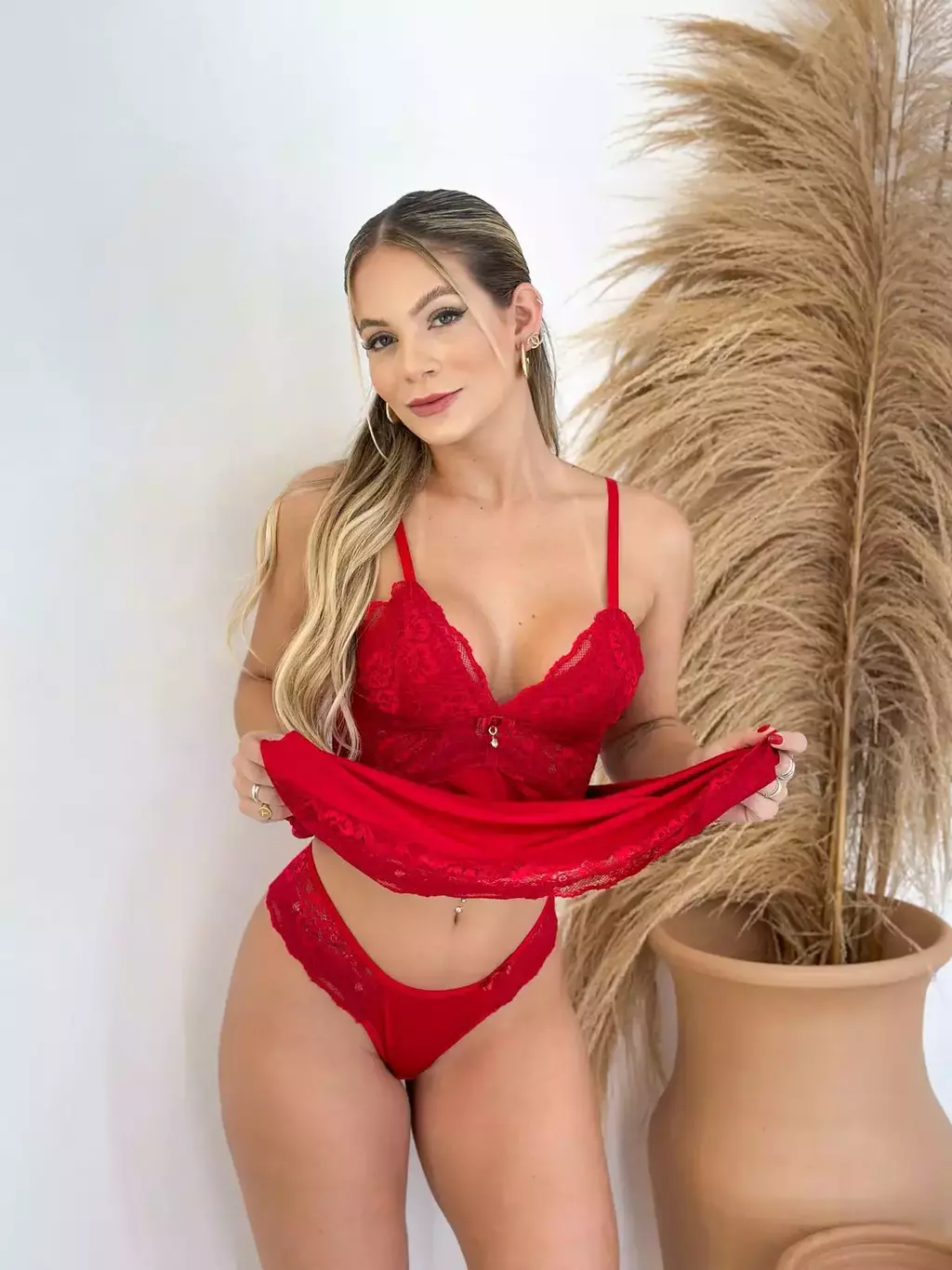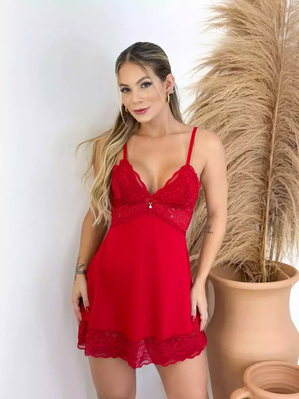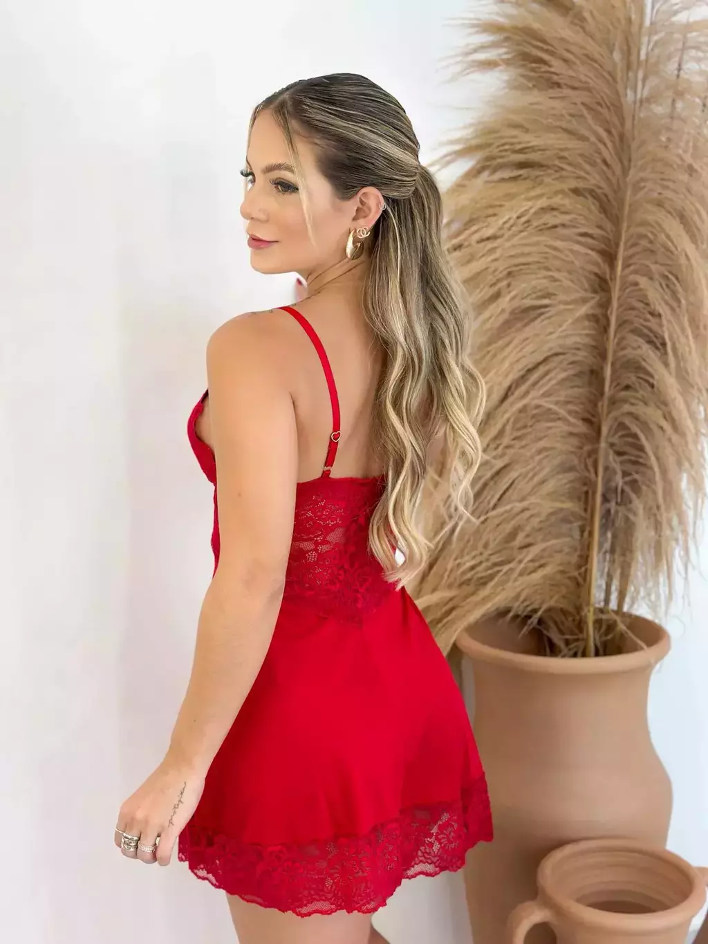 Calcinha: Para completar o conjunto, a camisola vem acompanhada de uma calcinha confeccionada no mesmo tecido leve e fluido. A calcinha possui detalhes em renda, garantindo um ajuste confortável e elegante que complementa perfeitamente a camisola.